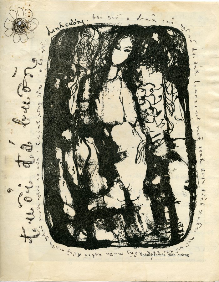 Minh họa của họa sĩ Đinh Cường cho nhạc phẩm Tuổi đá buồn với chữ viết của TCS