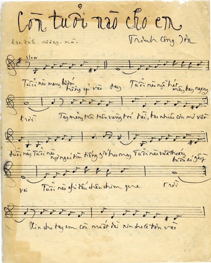 Trịnh Công Sơn chép tặng Dao - Ánh - sương - mù tình khúc Còn tuổi nào cho em.