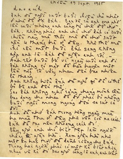Thư gửi Dao Ánh 19.9.1965